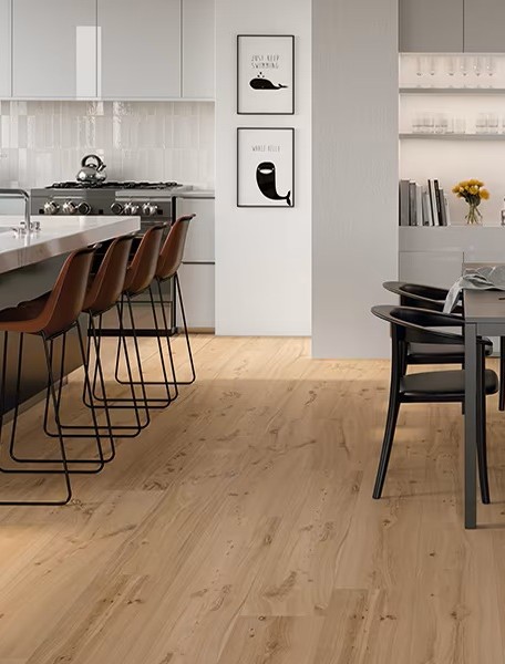 Diese Gestaltung erzeugt eine besonders authentische Holzoptik, die Räume warm, lebendig und gleichzeitig elegant erscheinen lässt.